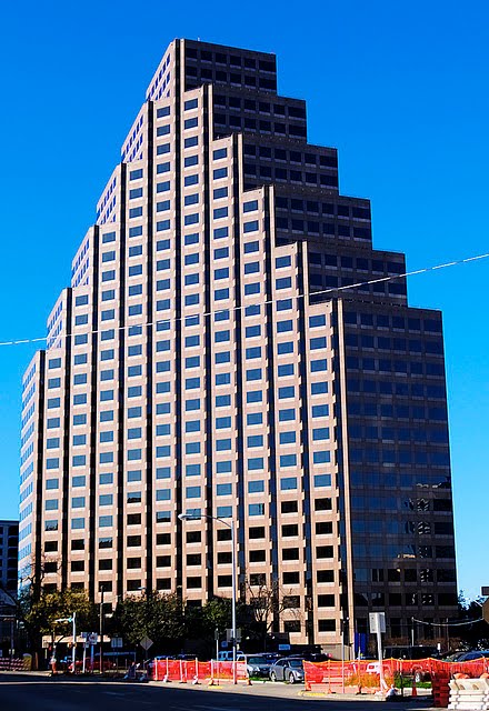 In particular, there are two buildings associated with Wells Fargo. The first is at 101 Congress, right near the Congress bridge and across the street from the equally hideous Radisson Hotel. The picture really doesn't do it justice - it's worse than it looks. It's wide as hell, and it looks like a pyramid built with a bunch of shit-colored legos.